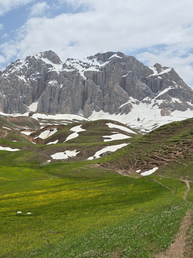 For me, mid to late spring is the ideal time to go. Snowmelt fills the lakes to their fullest, tall walls of snow still cling to shaded slopes, and the grasslands you climb through are green as far as the eye can see. Jagged, snow-covered peaks surround the valley in every direction.