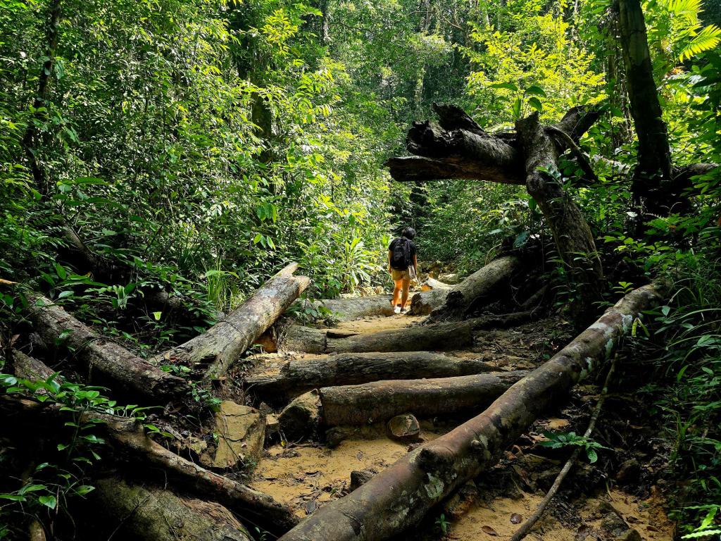 There are a few huts and ranger accommodations at the bottom of the mountain, along with a little bar area slinging smoothies, coffees, and Thai teas. You will be parting with some of your Baht there on your way out. A ranger desk is set up in this area to relieve you of some of your Baht before you hike the trail as well. 200 Baht per person come one, come all. It’s not everyday we’re in Krabi, so I didn’t mind forking over the money, and it may keep the trail less crowded. It was pretty quiet the day we made our ascent. Go sign-in at the hiker’s log and away you go.