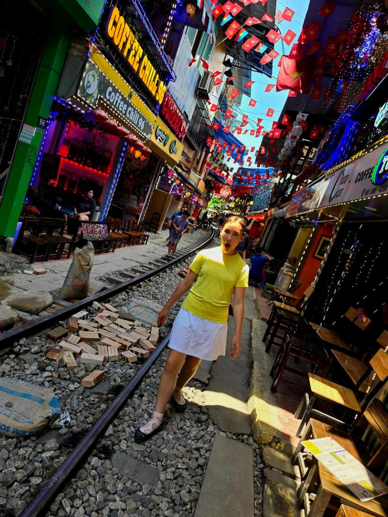 I ducked into a café, ordered an iced Vietnamese coffee to go, and asked about train times. The tracks were still very much active—chaotic, functional, and perfectly aligned with Hanoi’s energy. The barista told me to come back by 2:00 p.m. for a good spot ahead of the 2:30 train. I took mental notes of every turn so I could lead the family back later, then looped my way home.
