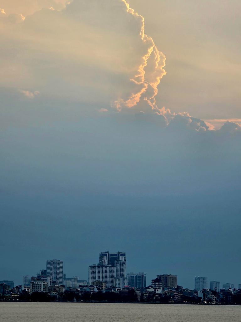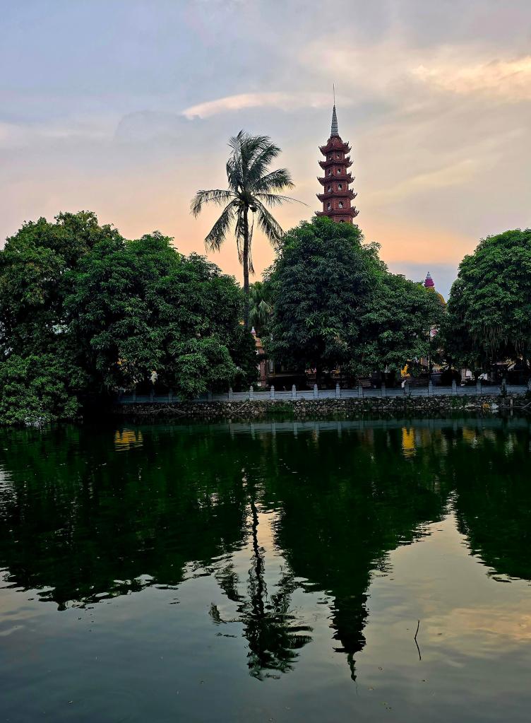 One afternoon we wandered out of the Old Quarter toward West Lake, following a road lined with massive old trees and passing remnants of city walls and towers. Only after walking a good distance did we realize just how big the lake really was. On the far side, we found a café with a rooftop terrace overlooking the water. As the sun dropped, a towering cumulonimbus cloud rose on the horizon—easily forty thousand feet high—its upper reaches flashing with lightning. We got our first real rain of the trip that night, though it didn’t last long. We walked close to ten miles through the city before ending up at a massive supermarket to stock up on snacks ahead of our beach escape.