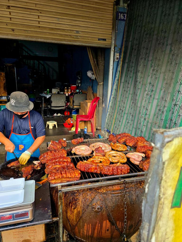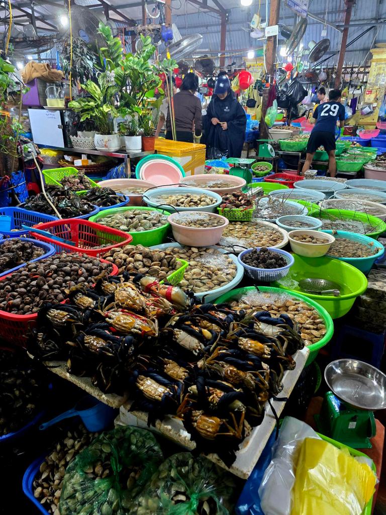 When we weren’t on the beach, we were wandering the market and eating far too well. There was a guy flame-roasting thick slabs of pork belly and sausages that we visited more than once. Ice cream shops served surprisingly good scoops in halved coconuts, the flesh scraped down and left at the bottom. Open-air seafood buffets required long walks afterward.