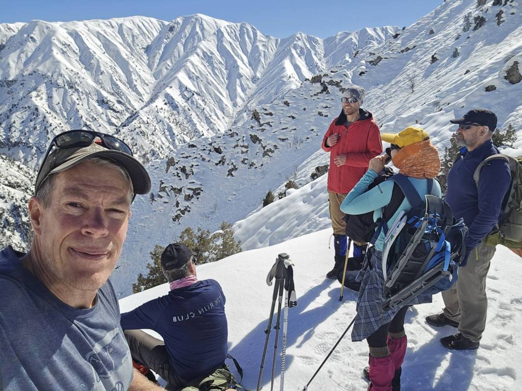 About 45 minutes later, we regrouped and started down. The descent wasn’t nearly as sketchy as I’d imagined, and once we found our rhythm, we were back at the base of the mountain quickly. As the sun climbed higher, the snow softened and my legs began punching through again, this time with more enthusiasm. Snowshoes came out, and instantly everything improved.