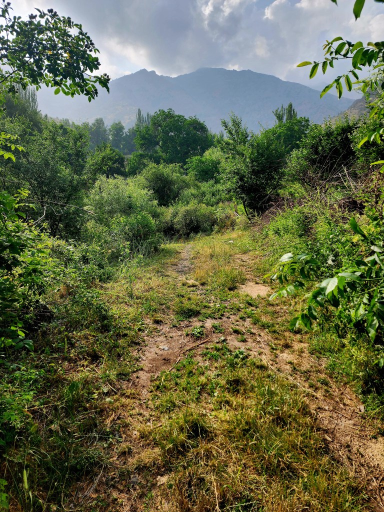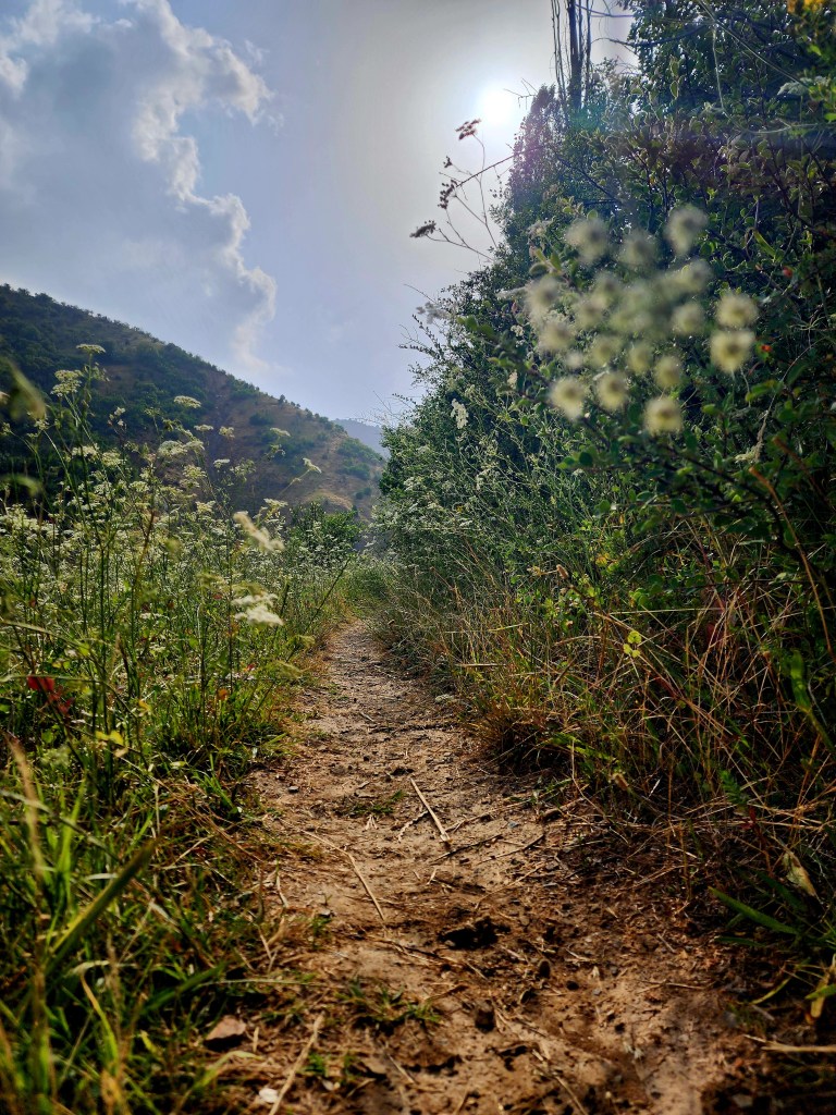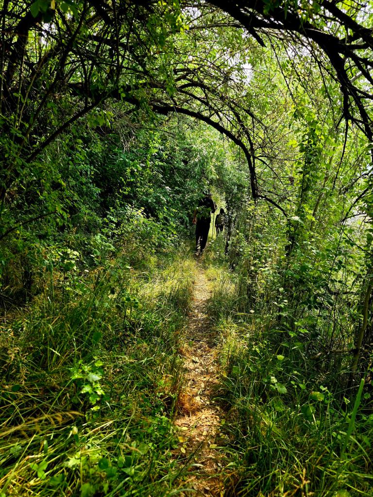 Leaving the village behind, the trail wandered through wide open meadows and into stretches of dense green vegetation that closed in overhead, forming short tunnels of shade. Beehive boxes dotted the hillsides along the way, a quiet reminder that this wasn’t nearly as remote as it felt.