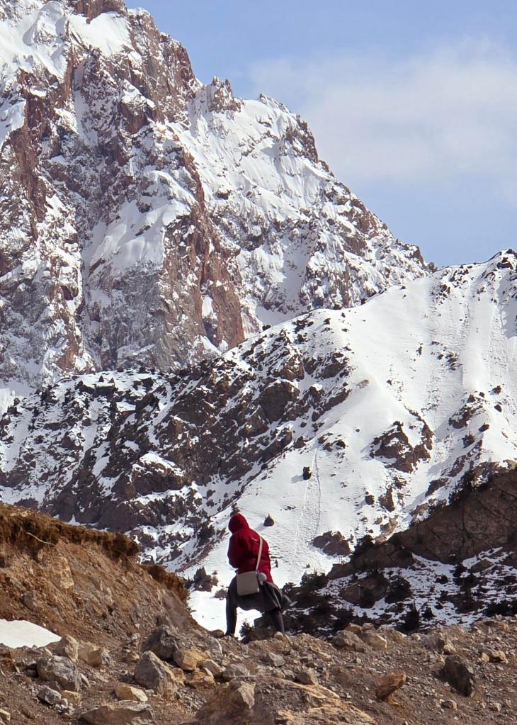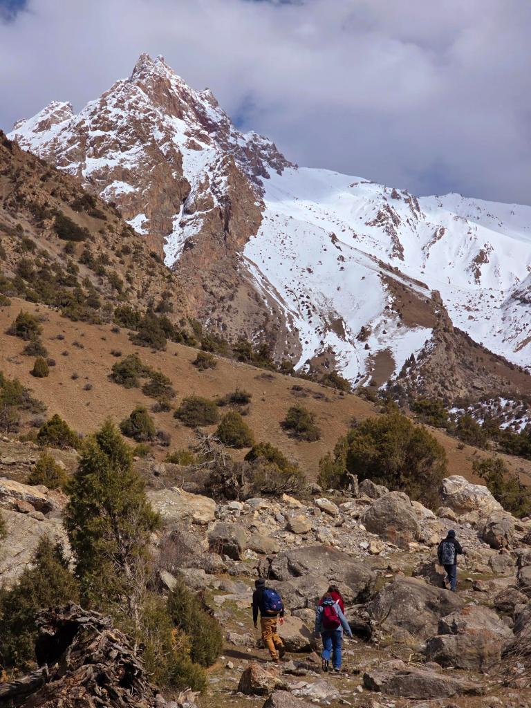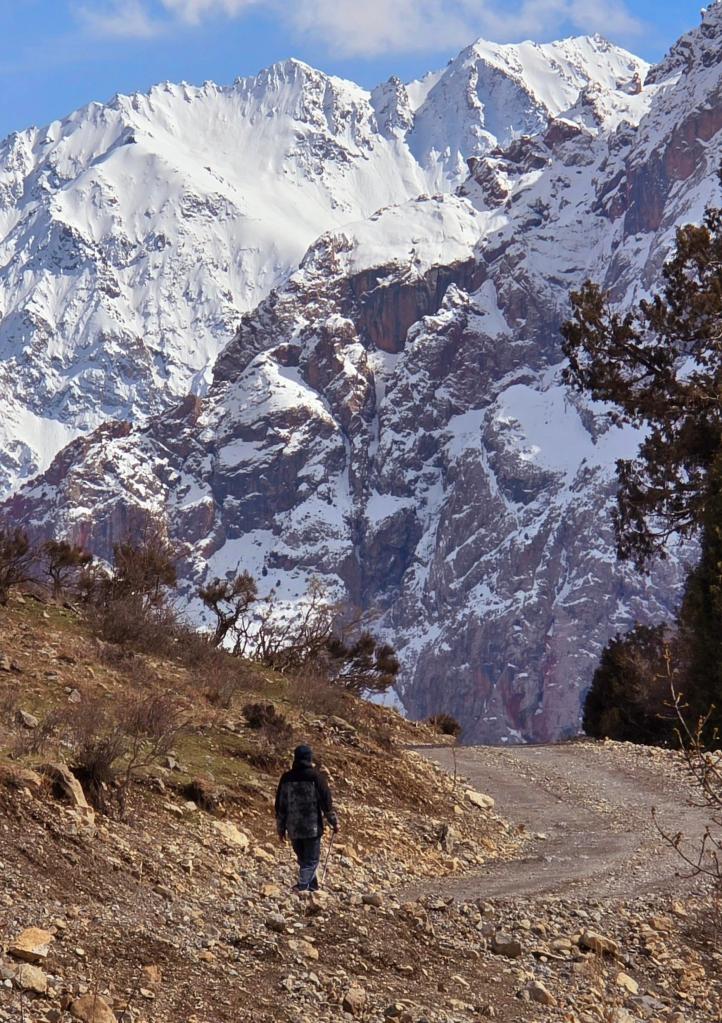We were up early that first morning in Sarytag, the kind of mountain morning that doesn’t need an alarm. Dilovar brought breakfast into the common room at 8:00, and not long after, my daughter and I were stepping out into that crisp March air—packs on, layers dialed, and the quiet excitement of a full day ahead settling in between us.