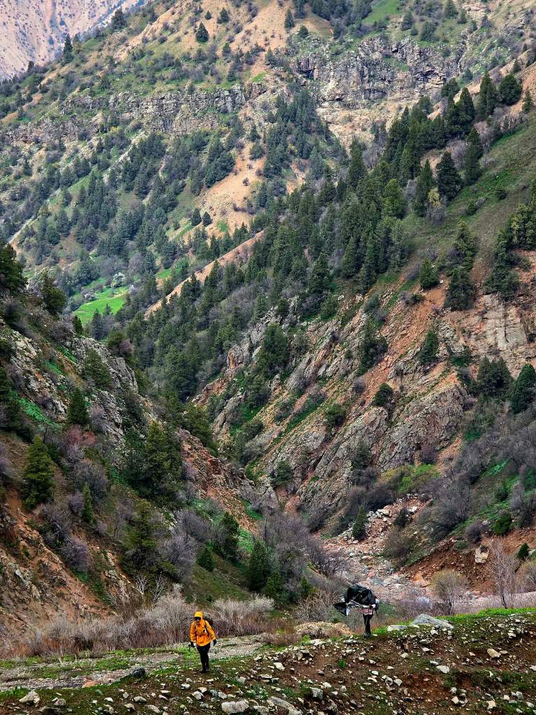 The path quickly deteriorated into steep, muddy terrain and eventually dropped us into a narrow drainage. At that point, we committed to following the water down, assuming it would lead us to the river near Dara.